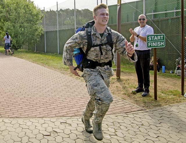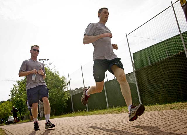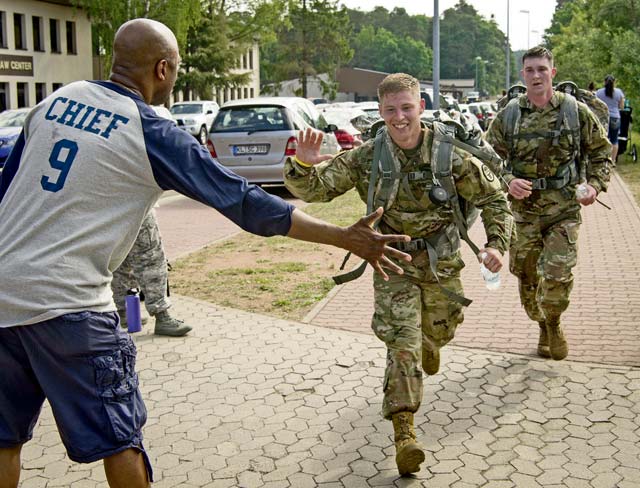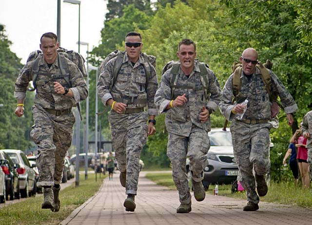 Runners head for the finish line during the Second Annual Chief Master Sgt. of the Air Force Paul Airey Memorial Ruck/March/Run June 2 on Ramstein.