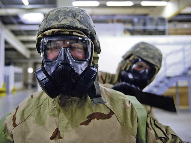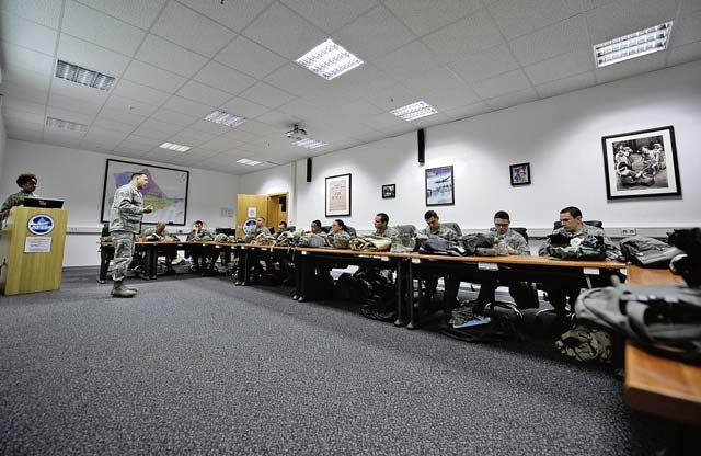 Tech. Sgt. Michael Osburn, 786th Civil Engineer Squadron emergency management plans NCO in charge, instructs a chemical, biological, radiological and nuclear defense course Jan. 3 on Ramstein. CBRN defense consists of contamination avoidance, CBRN mitigation and CBRN passive protection.