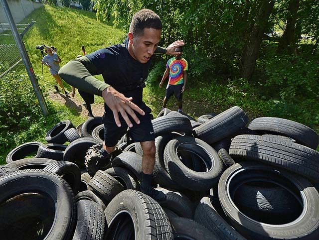 The 99 teams tackled 15 stations including a tire carry, rope walk, mud pit, pallet climb, monkey bars and container climb.