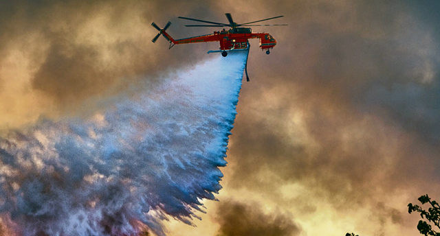 As the affected nations are mustering all their civilian emergency services to fight fires around the globe, the military makes available their unique equipment both on the ground and in the air to support the national firefighting efforts. Using planes and helicopters allows the firefighting crews to respond quicker in hard to reach areas with extinguishing material, which otherwise would take longer with traditional firetrucks.