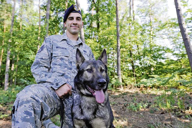 They step from the car, wagging their faithful tails as they trot next to their partners. Children squeal with delight as they see them, but Airmen know that as fluffy as they are, military working dogs are not a household pet.