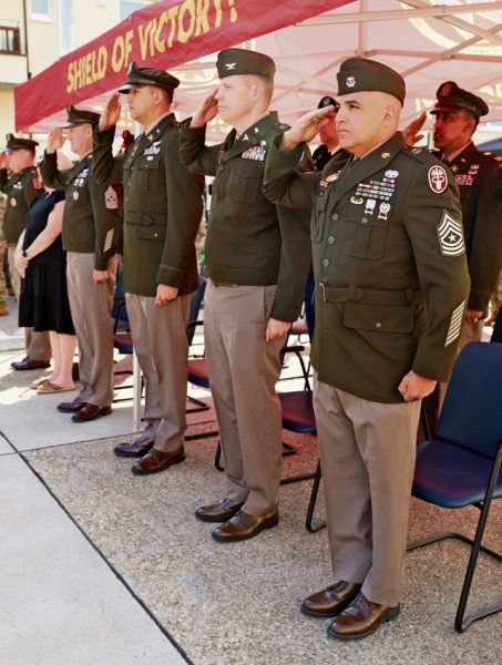 SEMBACH, Germany – U.S. Army Col. Jeremy Johnson (2nd from right), chief of staff for Medical Readiness Command, Europe and Sgt. Maj. Carlos Orsinicarrero (far right) from Dental Health Command Europe took part in the event. This year’s Army Birthday theme, “This we’ll defend,” was first used as a battle cry by the Continental Army. Today, it reminds us that our Army’s purpose is clear: to fight and win the nation’s wars. The Army remains committed to honing their warfighting skills, enforcing standards and discipline, and living the values that have defined the Army for the past 250 years.