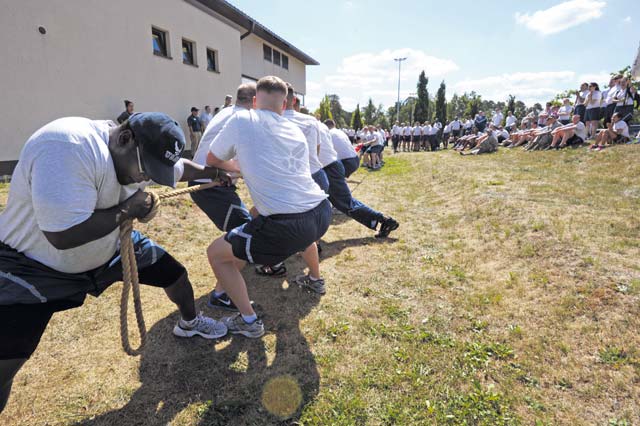 <b>Tug of war</b>Airmen from the 86th Dental Squadron battle against members of the 86th Munitions Squadron in a game of tug of war Aug. 20 at the Ramstein Southside Fitness Center. Airmen across the base participate in activities like this for physical fitness and to help build camaraderie.<b>Wing run</b><br>Commanders and command chiefs from the 86th Airlift Wing, 435th Air Ground Operations Wing and 521st Air Mobility Operations Wing cheer on Airmen as they pass during the tri-wing run
