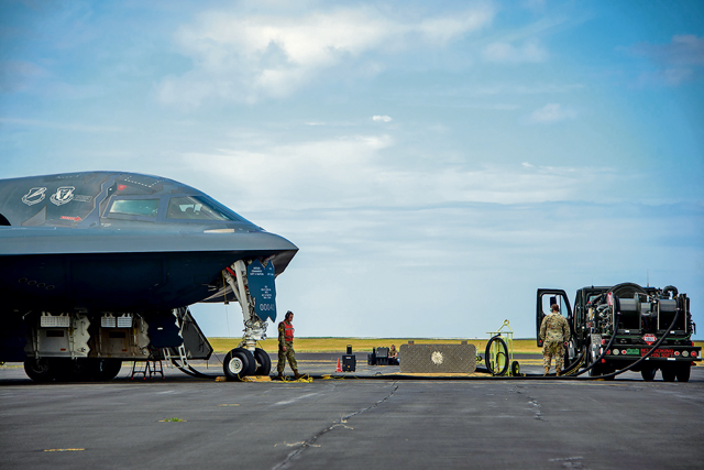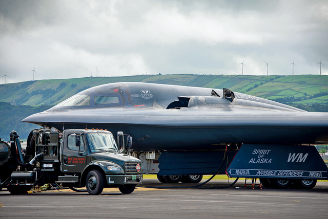 A United States Air Force B-2 Spirit Bomber from Whiteman Air Force Base, Missouri, undertook a hot pit refueling operation at Lajes Field, Sep. 12. The B-2 Spirit Bomber stop at Lajes highlights the readiness and capability of the men and women of the 65th Air Base Group to support global operations when called upon.