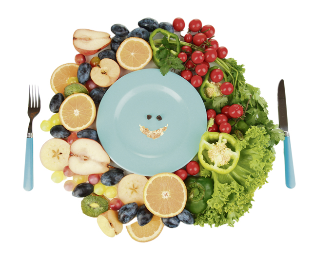 Blue,Plate,Surrounded,By,Wholesome,Food,Diet,Isolated,On,White