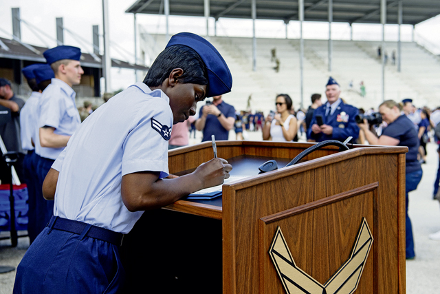 “Their desire to become citizens exemplifies their commitment and dedication to the United States,” said Col. John P. O’Dell, 37th Training Wing vice commander. “When we began the partnership with USCIS, we asked all trainees who would be interested in starting their application, and 111 raised their hands. These trainees volunteered to serve a country they aren’t yet citizens of, and now we get to formally recognize them upon their graduation as American Airmen.”