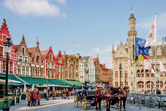 Bruges,,Belgium,-,Circa,March,2013,-,Horse,Carriages,Wait