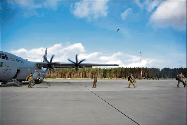 Airmen from the 37th Airlift Squadron and 435th Contingency Response Group assigned to Ramstein Air Base, arrive at 33rd Air Base near Powidz, Poland, for Aviation Detachment Rotation 21-1, Oct. 19. The Aviation Detachment Rotations are bilateral training exercises and deployments designed to enhance partner interoperability, maintain joint readiness and assure regional allies.