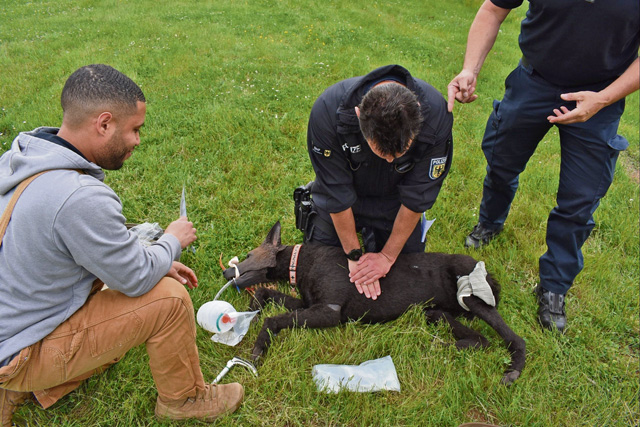 “This training has been crucial for us, it’s the first time ever that I receive comprehensive training for our dogs like this,” said Trier Police Commissioner Volker Heibel. “Each of our teams has a dog that they go on patrol with, but we aren’t taught how to take care of him in case of an emergency. We are asked for the veterinarian to arrive which can cost precious minutes in saving him.”