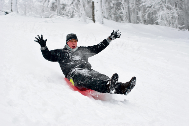 Sledding! If you were a veteran sledder as a child, then you know what to do. If you were raised somewhere where snow never showed, then you’re in for a treat.