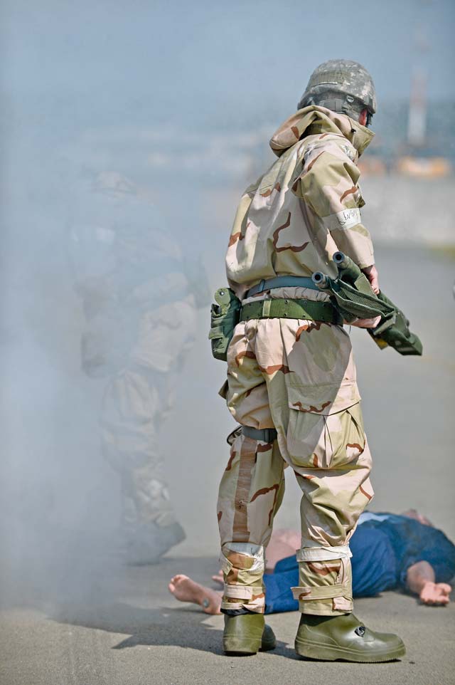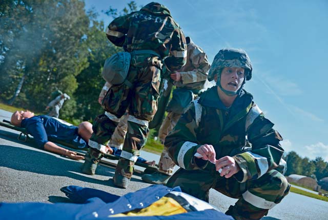 The 86th Civil Engineer Group challenged Airmen during a training scenario to measure readiness capabilities. Members of the 86th and 786th Civil Engineer squadrons responded to simulated situations Airmen might face while in a deployed environment. Participants were drilled with a simulated mass casualty incident, simulated mortar fire and the threat of a chemical attack. Mission-oriented protective posture equipment was also used to test mission capabilities during the exercise.