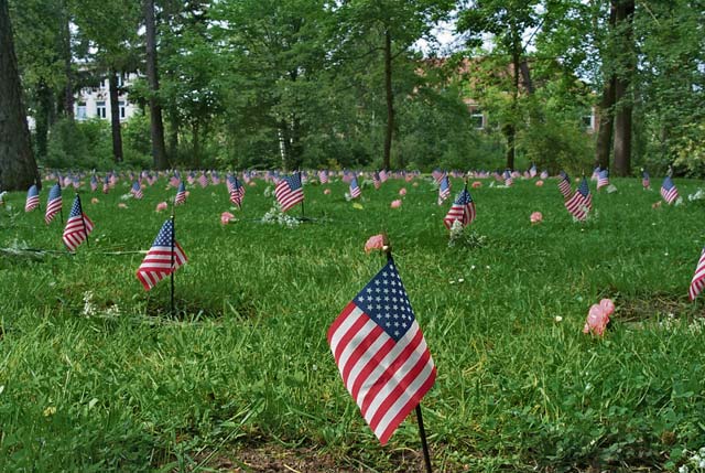 Flags are placed as grave markers for 451 infants. A memorial service is scheduled for 3 p.m. Saturday at Daenner Chapel and the Kaiserslautern main cemetery. — U.S. Air Force photos