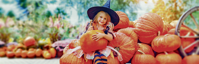 Child,Girl,Als,Little,Cute,Witch,With,Pumpkin,Outdoors,In