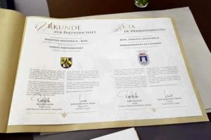Mayor José Javier Ruiz Arana from the city of Rota and Mayor Ralf Hechler of Ramstein-Miesenbach signed the agreement during an official ceremony at Ramstein-Miesenbach City Hall.