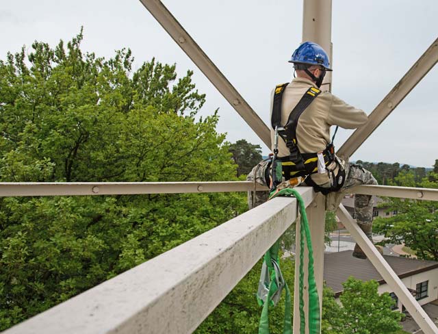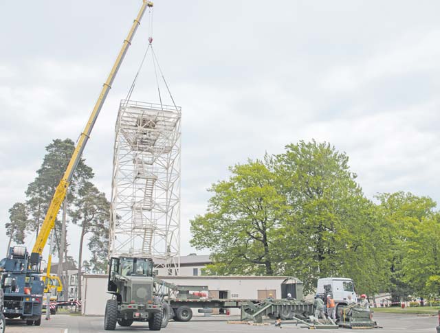 Staff Sgt. Eric Klusman, 1st Communications Maintenance Squadron special maintenance team member, disassembles a decommissioned radar tower for transport May 6 on Ramstein. The 30-year-old system provided air traffic controllers with a 360-degree view of Ramstein’s 11,000-square-mile airspace. Its replacement will provide all the capabilities of its predecessor, while vastly improving the detection capabilities and overall support for air traffic controllers.