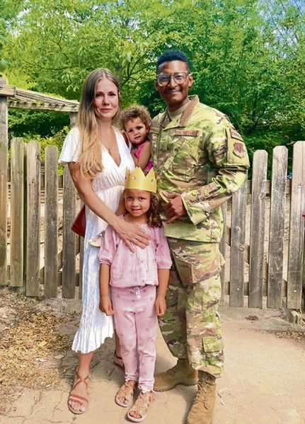 U.S. Air Force Master Sgt. Townsend and his wife Lisa Townsend pose for a photo with their daughters.