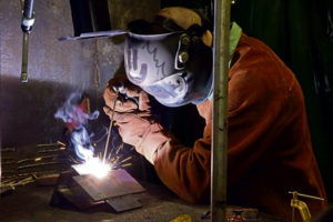 U.S. Air Force Airman 1st Class Stephen Thomas, 786th Civil Engineer Squadron structures, fuses metal during a welding course at Ramstein Air Base, April 28, 2020. The four-day training taught Airmen various welding principles to increase their proficiency. (U.S. Air Force photo by Senior Airman Milton Hamilton)