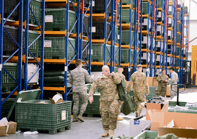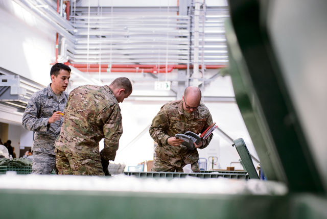Airmen from the 435th Air Ground Operations Wing receive equipment for their upcoming deployment April 11 on Ramstein. During the week, the Airmen gathered necessary equipment and documents for a future deployment. Airmen from the 435th AGOW must be ready to deploy and perform their mission at a moment’s notice.