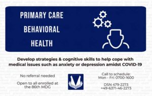 As an added means to cope with pandemic-induced stressors, the 86th Medical Operations Squadron (MDOS) primary care behavioral health (PCBH) is here to help put Kaiserslautern Military Community members’ minds at peace.