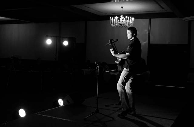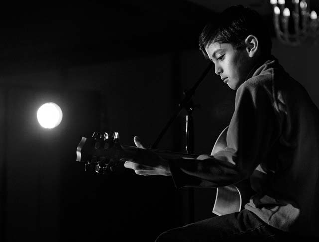 Collin Lyon, son of Maj. Robert Lyon, Defense Logistics Agency chief of operations, plays the guitar during a talent contest Oct. 19 on Ramstein.