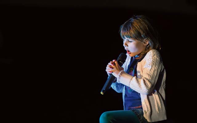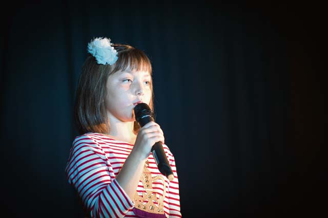 Sadie Fine, daughter of Master Sgt. Chet Fine, 1st Communications Maintenance Squadron operations flight chief, sings during a talent contest.