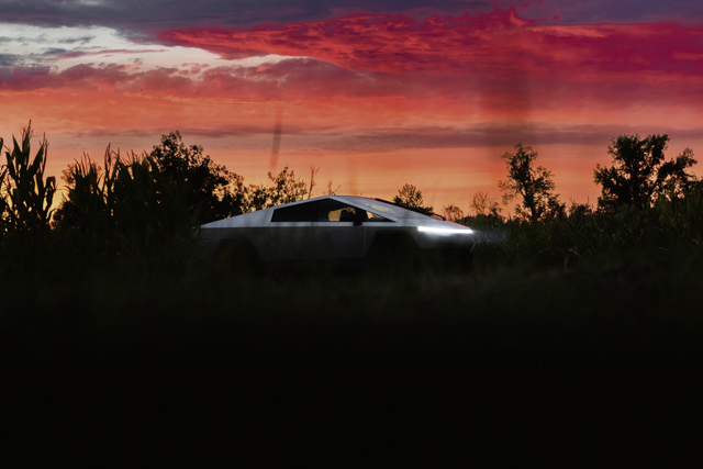 Cybertruck,Electric,Truck,In,Nature,At,Sunset