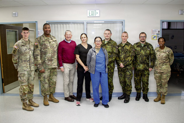 Landstuhl Regional Medical Center hosts a delegation from the Czech Republic for an in-depth professional engagement focused on advancing trauma systems, surgical care and long-term medical collaboration between partner nations, Nov. 19, 2025, in Landstuhl, Germany. Organized by LRMC’s Global Health Engagement team, the visit includes a comprehensive LRMC overview, a Trauma Service presentation, a hospital tour, a Simulation Center visit and detailed discussions aimed at strengthening interoperability, sharing best practices and identifying opportunities for future cooperative training. The engagement underscores LRMC’s commitment to fostering strong multinational partnerships that enhance readiness and improve patient outcomes across allied medical communities. (DoD Photo by Travis Jones)