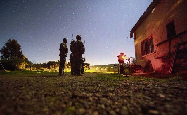 Joint terminal attack controllers from the 2nd Air Support Operations Squadron work through a nighttime scenario as part of exercise Serpentex 16 March 15 in Corsica, France. Training at night helps JTACs hone their skills by using different tools and techniques to call in close air support under more challenging circumstances.