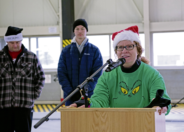 U.S. Air Force Brig. Gen. Adrienne L. Williams, 86th Airlift Wing commander, hypes up runners prior to the start of the Joint Jingle Jog at Ramstein Air Base, Germany, Dec. 14, 2024. The holiday-themed race is part of a Kaiserslautern Military Community effort to promote morale and resilience. (U.S. Air Force photo by Tech. Sgt. Alexandra M. Longfellow)