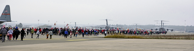 More than 300 U.S. Air Force, U.S. Army and family members participate in the Joint Jingle Jog at Ramstein Air Base, Germany, Dec. 14, 2024. The run aimed to bring the base community together while encouraging healthy habits. (U.S. Air Force photo by Tech. Sgt. Alexandra M. Longfellow)
