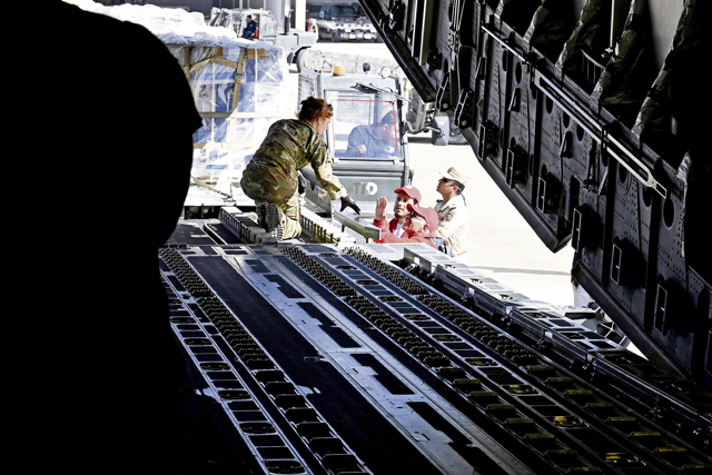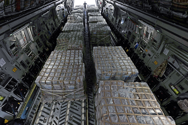 The aid includes vitally needed medical supplies, warm clothing, food and nutrition assistance. At the request of U.S. Agency for International Development, the supplies were transported via Air Force C-17 Globemaster aircraft and arrived in Al-Arish, Egypt, where they will be transported via ground transportation to Gaza and distributed by U.N. agencies, Ryder said.
