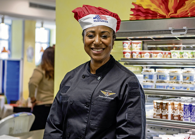 U.S. Air Force Colonel Felicia L. Burks, 86th Medical Group deputy commander, poses for a photo in the Rheinland Inn Dining Facility during Thanksgiving at Ramstein Air Base, Germany, November 28, 2024. Leaders from around the DoD served Thanksgiving meals to the Kaiserslautern Military Community to show their appreciation during the holiday season. (U.S. Air Force photo by Tech. Sgt. Miquel Jordan)