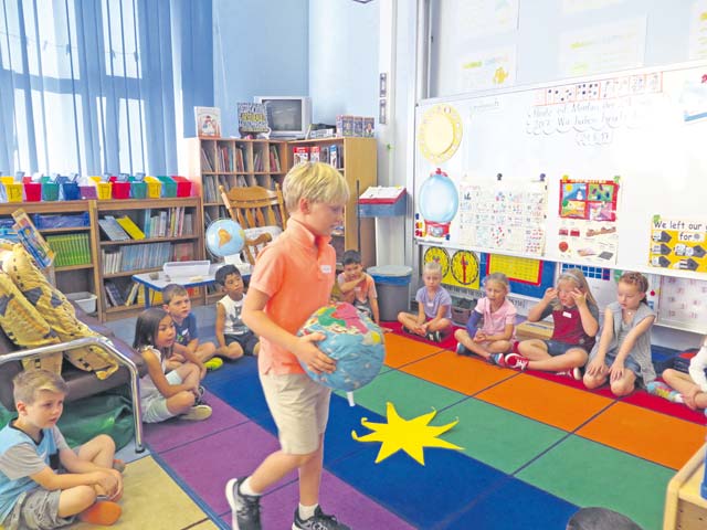 Landstuhl Elementary Middle School students celebrate birthdays by walking around the sun with the earth carefully in hand in Gabriele Arseneault’s classroom. When they walk, they remember that the earth is the third planet around the sun and that a year has 365 days. This is a way to incorporate science into a birthday celebration.