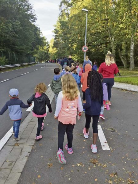 Landstuhl Elementary Middle School went on the 9th Annual Fall Volksmarch. Sandy Merchat organized the Volksmarch. There were two routes in the LRMC Community, one for 2 km and one for 5 km. There were many parent volunteers walking with individual classes. Staggered starts, as well as crossing guards ensured a safe and enjoyable Volksmarch for everyone. — Photo by Kim Marlin