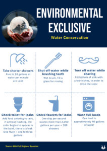 According to the U.S. Department of Interior’s Bureau of Reclamation, only three percent of Earth’s water is available for consumption, making it necessary to conserve.
