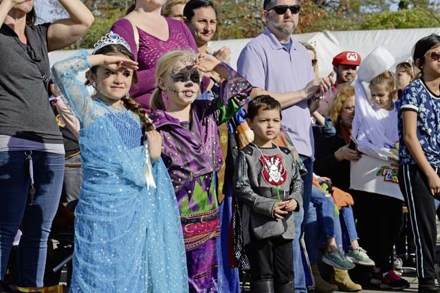 Costumed children watch dancers perform during this year’s Fall Festival at Ramstein Air Base, Oct. 26. The event, organized by the 86th Force Support Squadron, included a pumpkin decorating contest, live performances, costume contests and a free photo booth.
