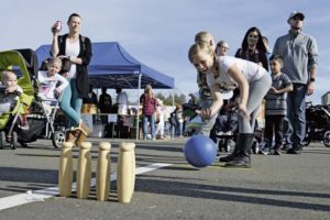 A young girl bowls during the Fall Fest on Ramstein Air Base, Oct. 26. The Enlisted Club parking lot was sectioned off to allow Kaiserslautern Military Community families room for games and seasonal activities.