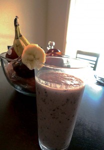 In a blender, add in fruit, yogurt, ground flax (optional) and milk. Add ice (if desired) then add honey. Blend about 30 seconds (or until smooth and has no chunks). Serve.