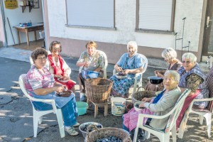 Hella Ullinger (third from left) and Morbach residents come together and prepare fruit for plum butter to be offered during the annual Latwerch Fest Sunday.