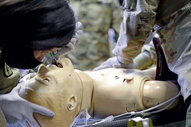 The human simulators provide a realistic aspect to medical training. During exercises, instructors can program the simulators with vital information. The simulators can have a pulse, breath and even bleed.