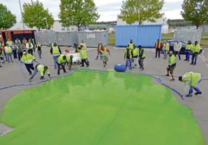 “First, we play out the spill scenario with little instruction — as if it were to happen without notice during the normal work day. This allows the unit’s environmental officers and safety managers to identify areas for improvement in the training they provide their unit members,” she explained. “Afterward, we talk through what happened during the response, discuss what could be corrected and then repeat the same spill event to watch the improvements.”