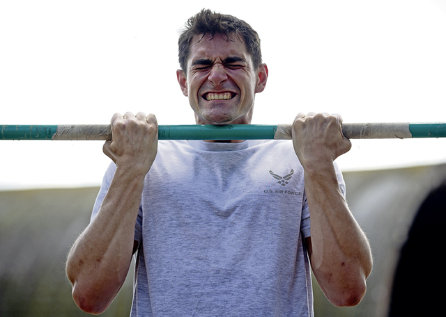 The participants also rucked 12 kilometers (7 miles) on a hiking trail carrying rucksacks equipped with 15 kilograms (33 pounds) of water, kettlebells, clothing and other miscellaneous items. Covered in sweat and exhausted, the participants finished the last laps around the track and officially completed all components of the GAFPB.