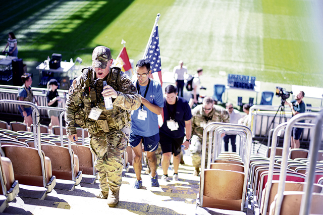 Airmen from Ramstein Air Base participated in a stair climb ruck march in honor of the firefighters and paramedics who lost their lives during the terrorist attacks on Sep. 11, 2001, at Fritz-Walter Stadium in Kaiserslautern, Sep. 11. The event attracted approximately 60 attendees including U.S. Army Soldiers and firefighters from Kaiserslautern, Germany’s fire protection service. In total, 343 first responders died in New York City while working to rescue victims trapped in the World Trade Center following the attacks.