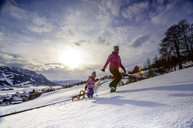Germany,,Bavaria,,Allg‰u,,Woman,And,Daughter,Enjoying,A,Winter,Day