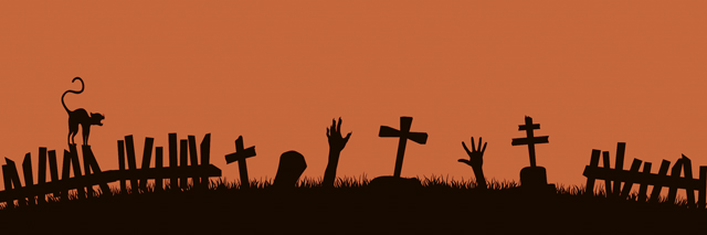 Halloween,Background,Silhouettes.,Zombie,Hands,Stick,Out,Of,The,Ground