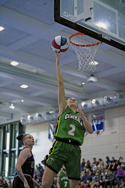 Washington Generals player dunks the ball at Ramstein Air Base, Germany, March 24, 2023. The Harlem Globetrotters and the Washington Generals played at RAB in a special event hosted by Armed Forces Entertainment with two games and meet and greets with the Harlem Globetrotter players. (U.S. Air Force photo by Airman 1st Class Jordan Lazaro)