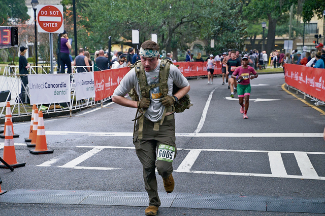 A high-speed U.S. Army Chemical Corps officer took first place in the ruck division of the 10-kilometer Enmarket Savannah Bridge Run in Savannah, Georgia.