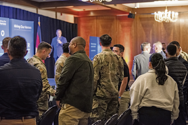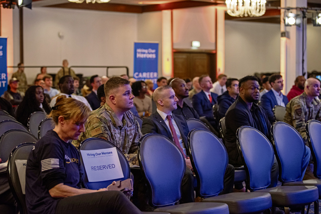 U.S. Military members attend a Hiring our Heroes event at Ramstein Air Base, Oct. 17.