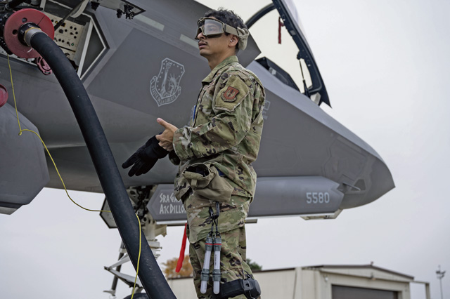 U.S. Airmen from the 435th Contingency Response Group, 86th Logistics Readiness Squadron and 52nd LRS completed Ramstein’s first-ever F-35A Lightning II hot-pit refueling operation at Ramstein Air Base, Nov. 14.