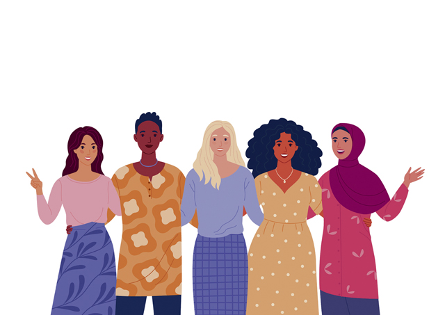 International,Women’s,Day.,Vector,Illustration,Of,Five,Happy,Smiling,Diverse